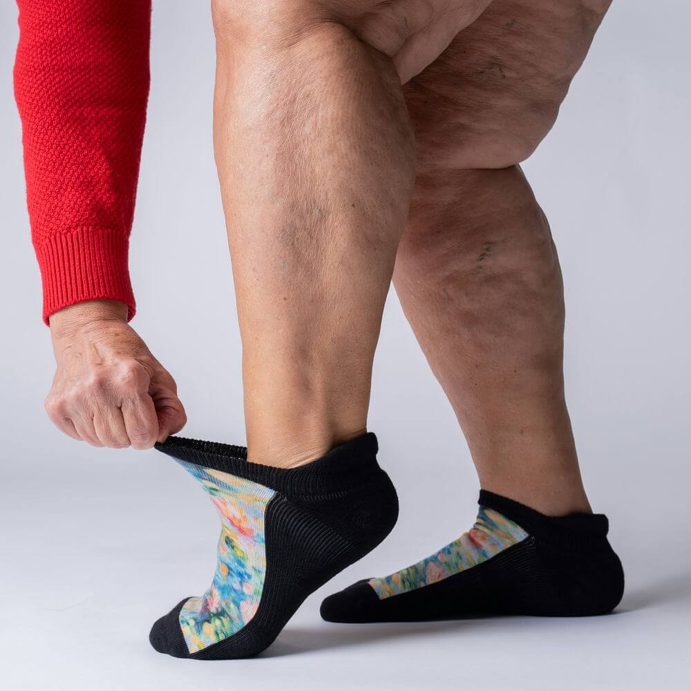 Designed to stretch and support swollen ankles and feet, providing relief and comfort.